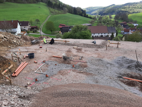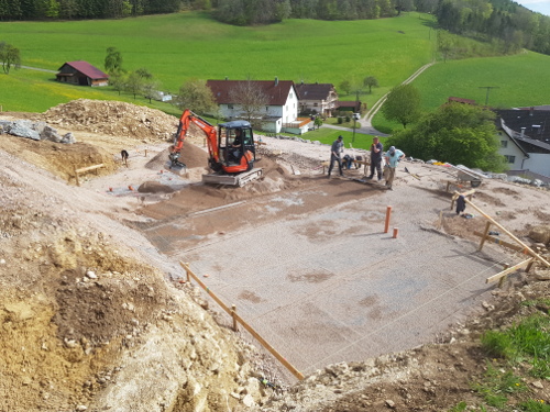 Mit den Vorbereitungen für die Bodenplatte wird begonnen. |