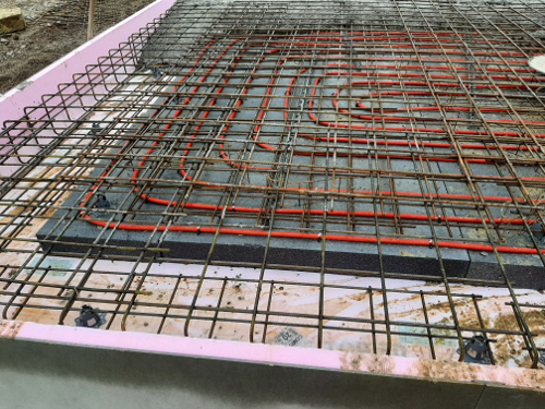 Die Heizspiralen wurden gelegt und das Stahlgitter verpflochten. |