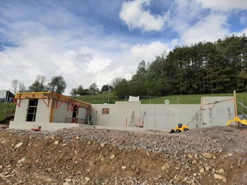 das Halbkellerstockwerk hat schnell seine Außenwände. |