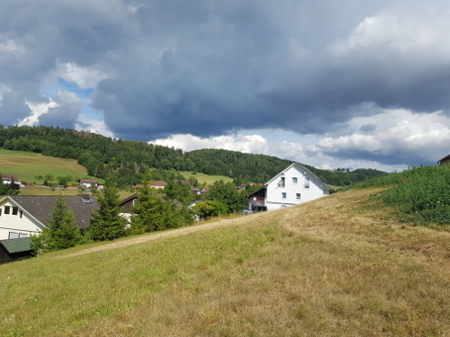 Vom Grundstück hat man eine schöne Aussicht. Jedoch der Hang ist für Garten und Haus eine Herausforderung. |