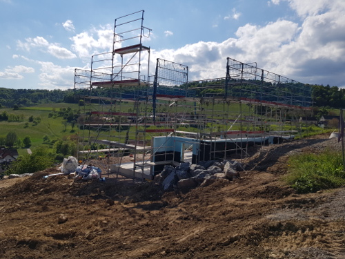 Die Zuschüttung ist auch an der Teilkellerwand gemacht worden und wird für das Gerüst gebraucht. |