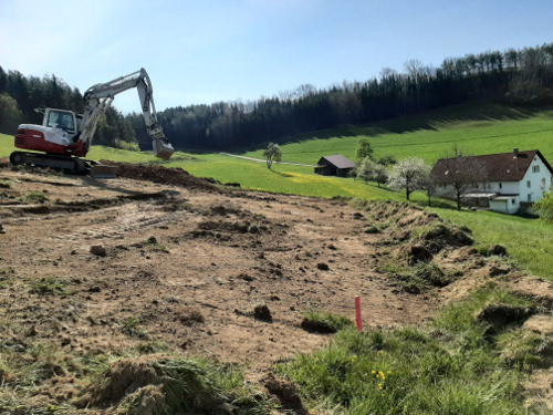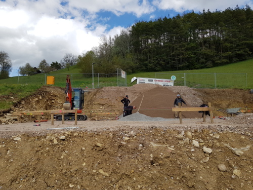 Die Erdarbeiten haben begonnen. Der gute Mutterboden kommt zur Seite und wird für später aufgehoben. |