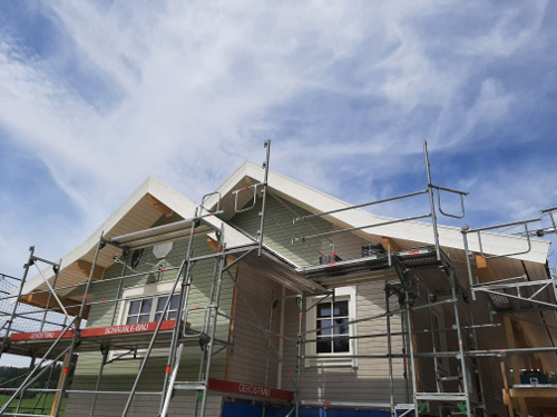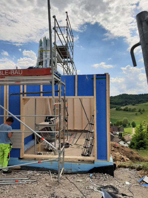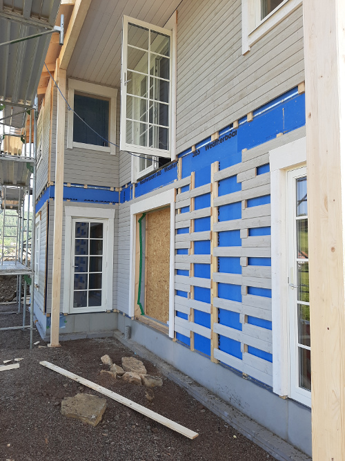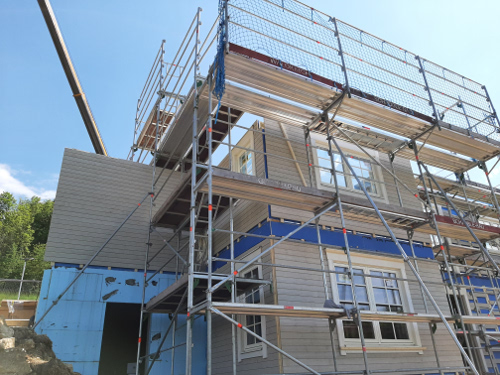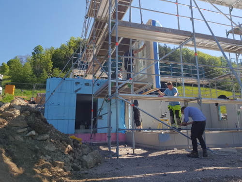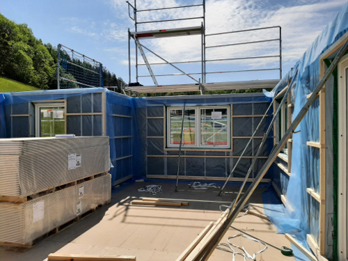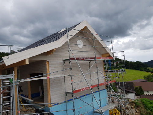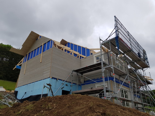 An der Fassade wird weiter gearbeitet. Es fehlt auch noch das Küchenschiebefenster und ein Terassendoppeltür. |