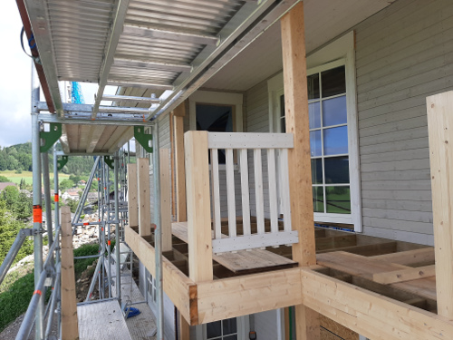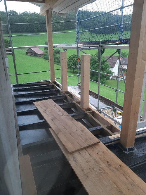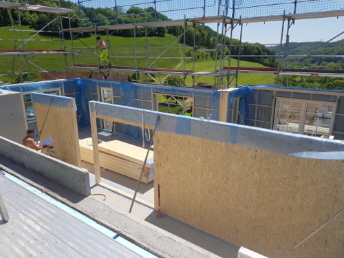 Mit dem Balkon wird angefangen. Die Wand ist dort nun auch geschlossen. |