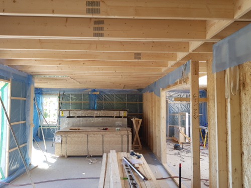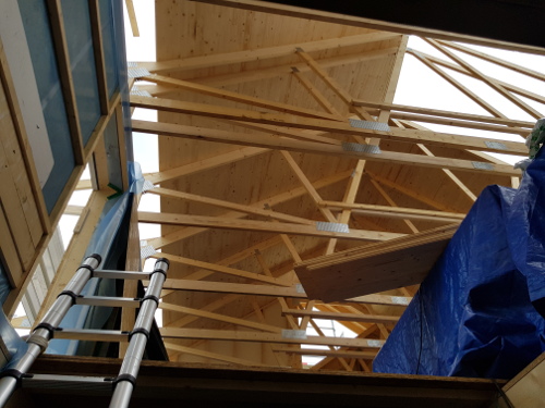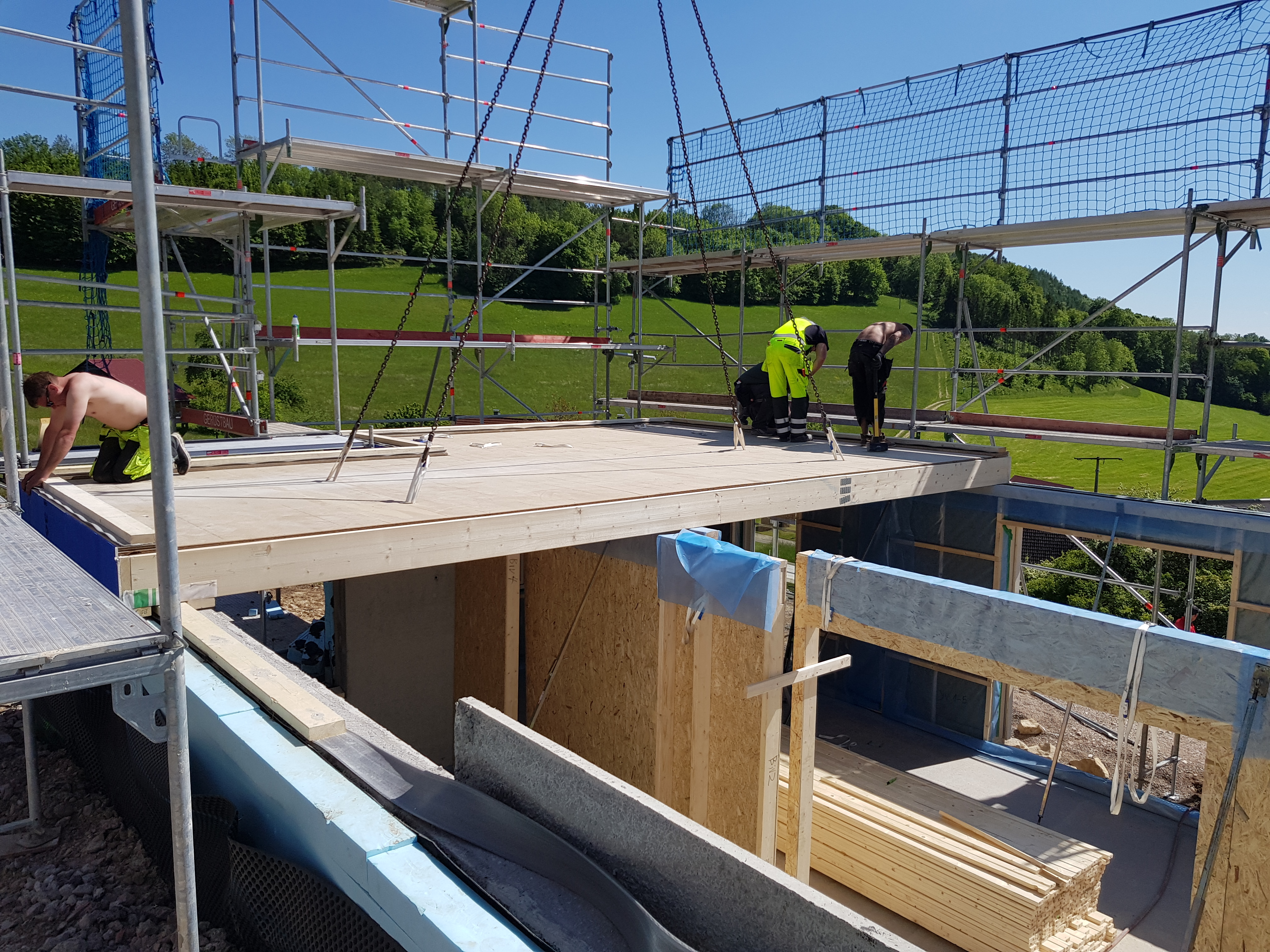 Die Außenwände des oberen Stockwerks werden auch noch heute gesetzt.. |