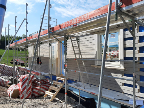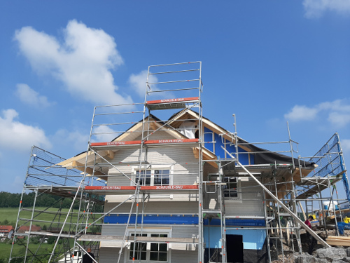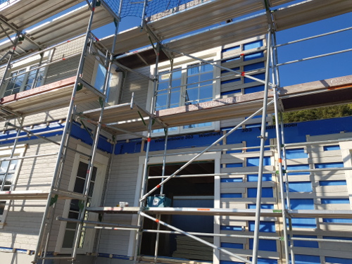Das Haus wurden jetzt einmal gestrichen. Bald kommt das Gerüst weg. |