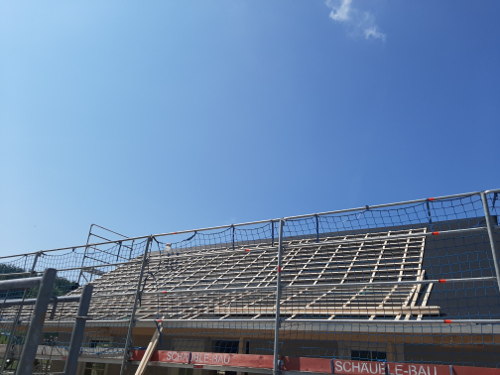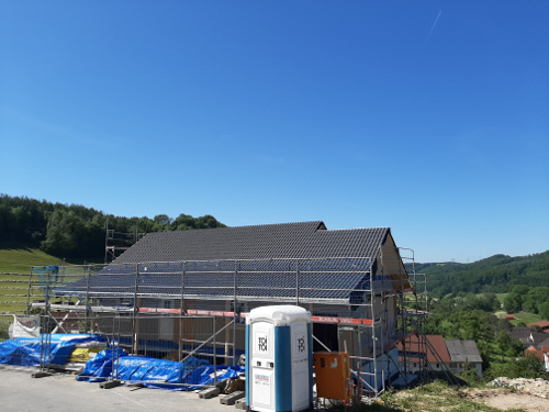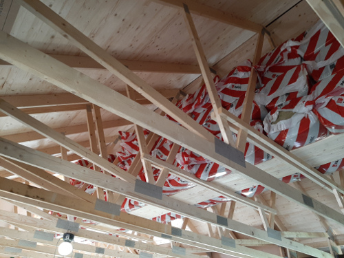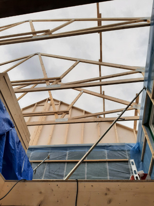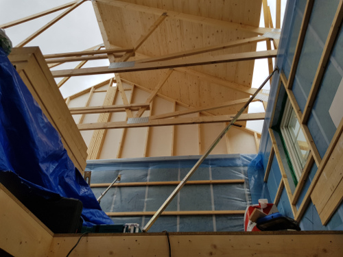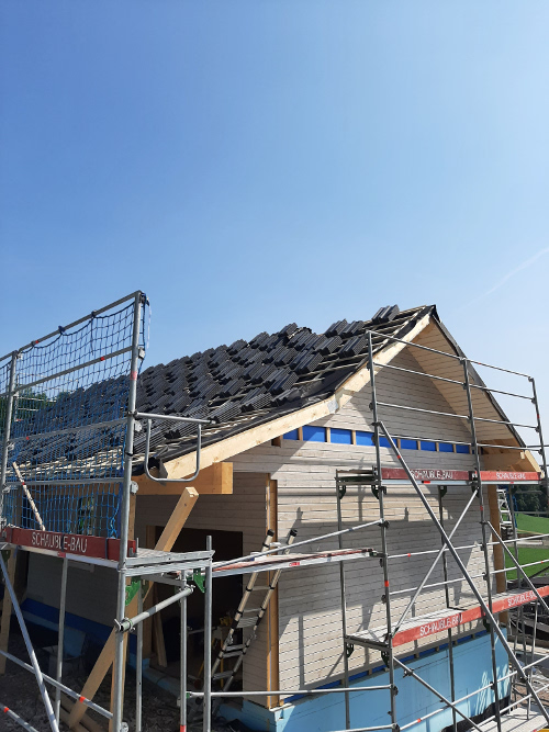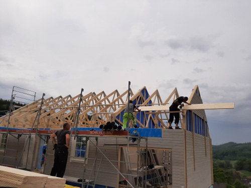 Nachdem die Dachmaterialien geliefert und zusammengebaut wurden, ist nun auch das Dach errichtet. |