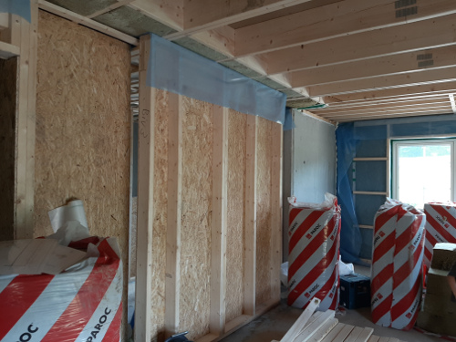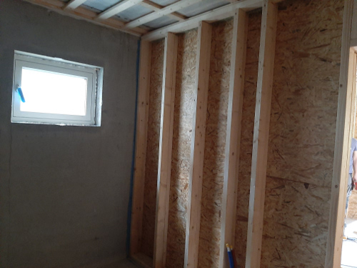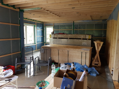 Wegen dem schlechten Wetter wird mit den Innenwänden angefangen. |