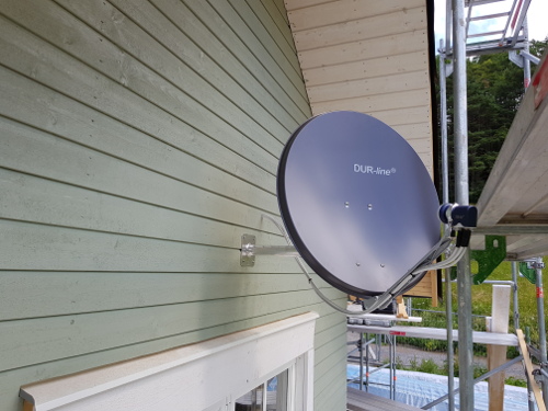 Die Satellitenschüssel habe ich bei Regen ans Haus gebracht. |