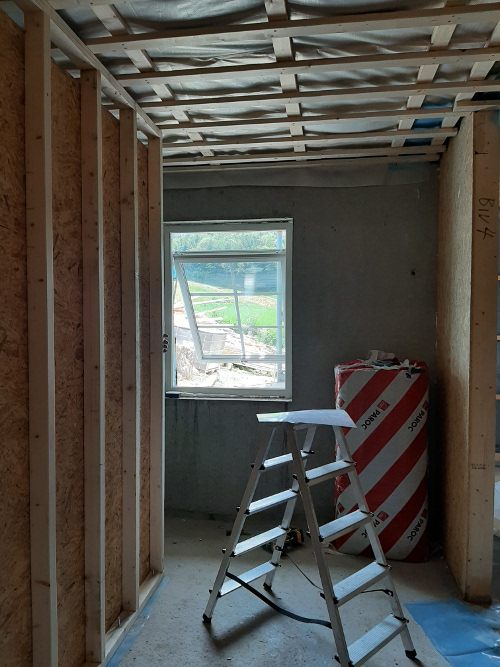 Im oberen Stock geht es weiter voran, auch mit Gibskartion. |