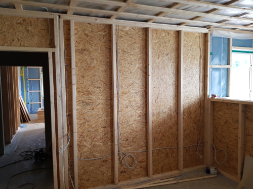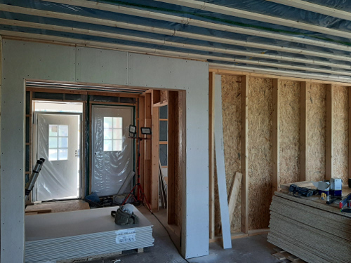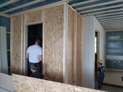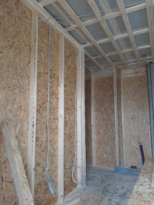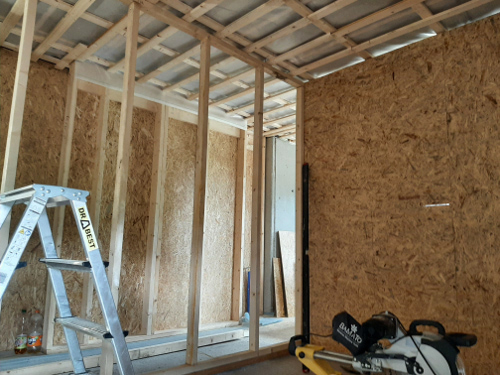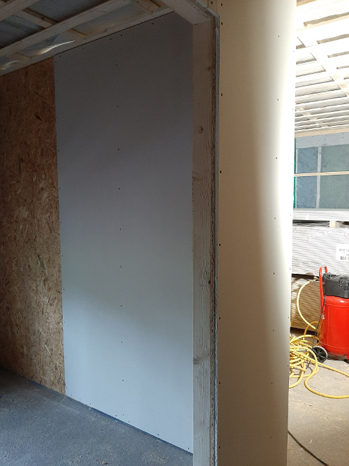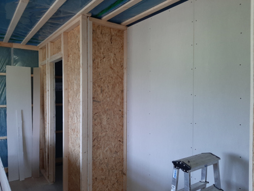 Gipskarton kommt nun auch auf die Innenwände drauf. |