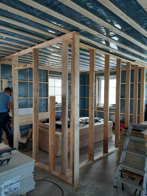 Für die Statik und die Zwischendecke werden ein paar Innenwände gesetzt. |